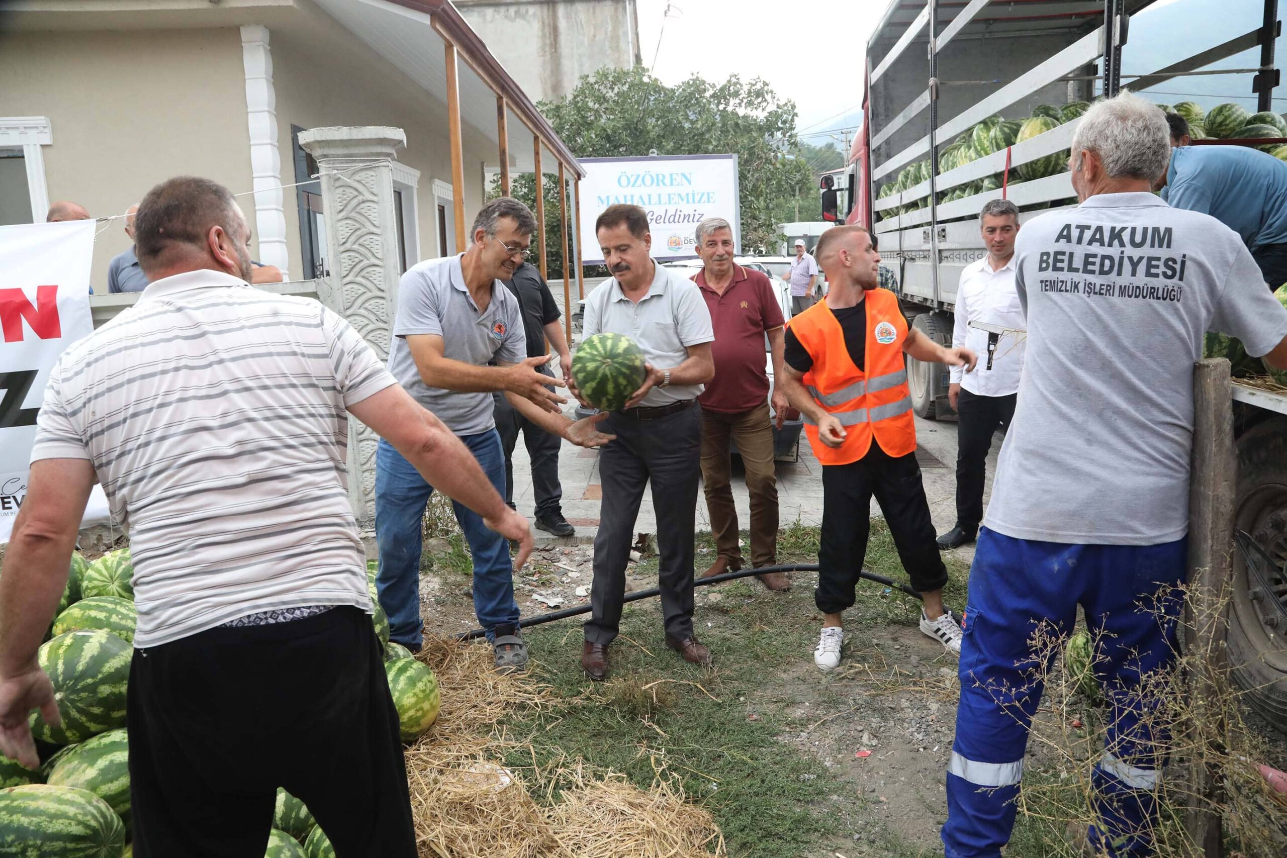 Atakum Belediyesi ve Samsunspor taraftar gruplarının Bafra’daki karpuz üreticisine destek olmak amacıyla “Karpuz tarlada kalmasın” sloganıyla başlattığı ve 10 günde 400 ton karpuzun yurttaşlara ulaştırıldığı dayanışma kampanyası büyümeye devam ediyor. Belediye ekipleri bu kez 30 ton karpuzu Atakum’un kırsal mahallelerine ulaştırmak için kolları sıvadı. Özören Mahallesi’nden başlayıp diğer mahallelere ulaştırılan karpuzlara yurttaşlar yoğun ilgi gösterdi. Başkan Deveci de çalışmalara katılarak hem destek oldu hem de mahallelilerle görüştü.